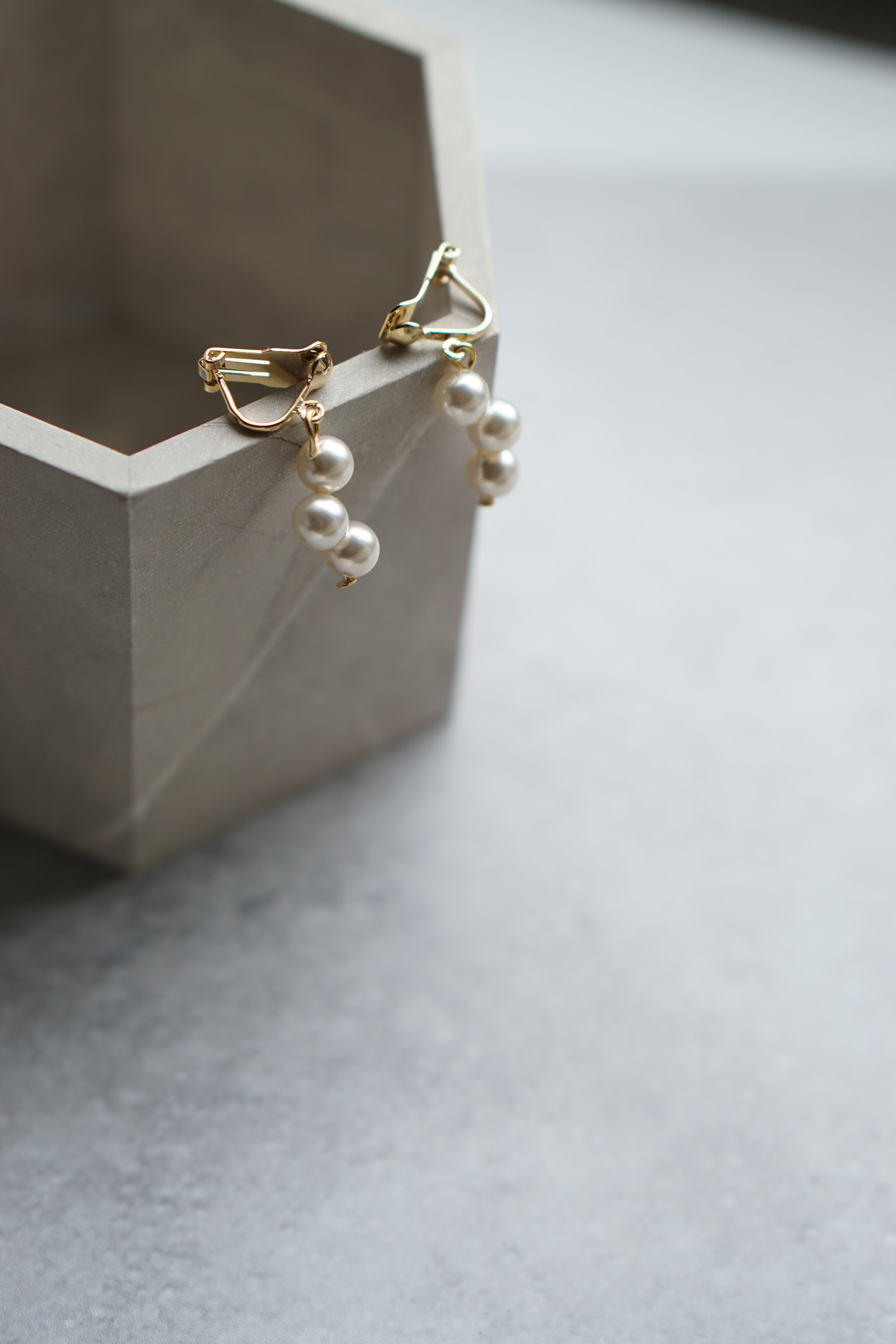 3つのパールが並んだシンプルな耳飾り